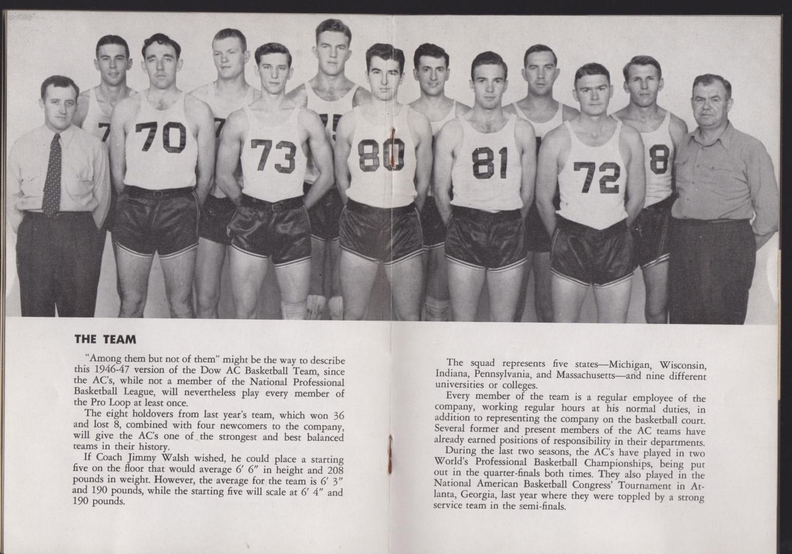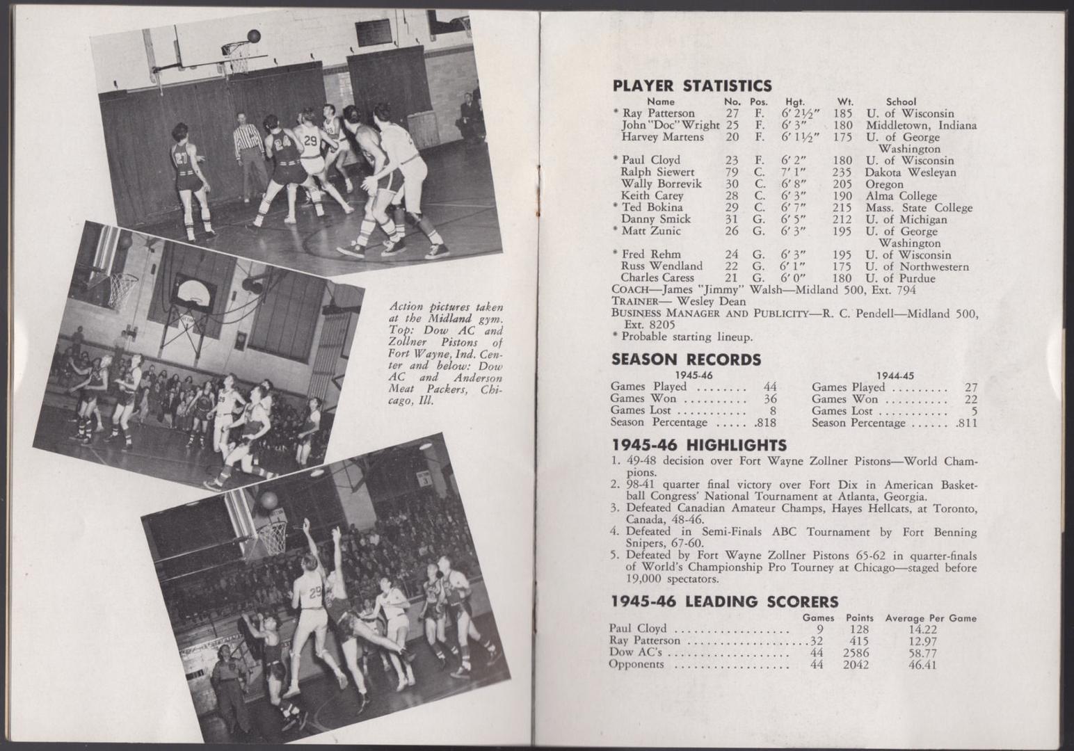 Matt Zunic served as both a player and coach for the Dows. He played for them from 1945-1948 and breifly acted as a coach in 1947-48. Zunic would leave the Dows to go play for the Washington Capitols of BAA.