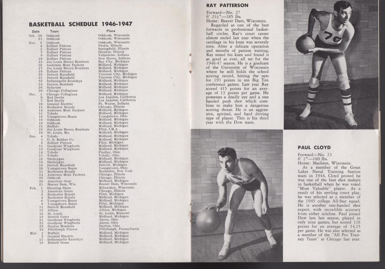 Raymond Patterson F January 15, 1922 6'2" 195 Wisconsin