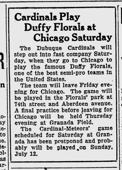 The Duffy Florals won the MBC first championship but did so with a bit of controversy. Detroit and Chicago had finished with the same record, but Chicago had not played the league mandated 12 league games. Yet, league owners took Chicago over Detroit and the Florals would go on to defeat Akron and Indianapolis for the championship. In 1937 when the MBC reorganized into the NBL, no Chicago team was admitted. Like many teams of the era, the Duffy Florals played a lot of exhibition or barnstorming games. One such game occurred on March 13, 1935, vs the Cicero Merchants. The Merchants beat the Duffy Florals 41-26. The Merchants were lead by the Kolar brothers, who would eventually play for the Duffy Florals and help them win their 1936 championship.