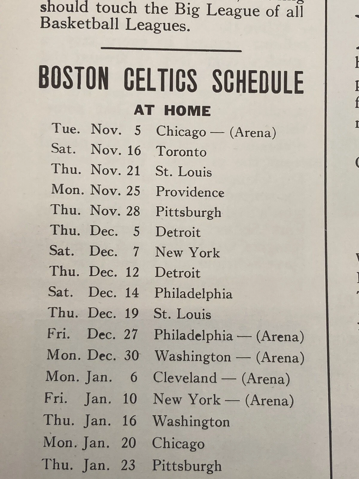 Three days later the Celtics would host their first home game in Boston Garden. The Boston Garden become an iconic feature in Celtics lore, but at the time the Celtics were just a way too fill up seats when the Bruins were not at home.